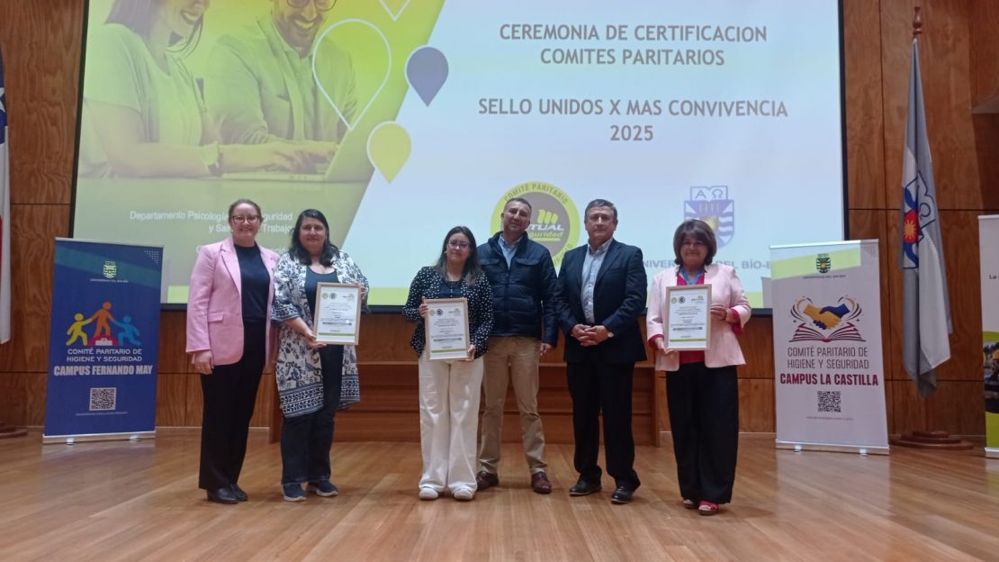 La distinción fue entregada en una ceremonia realizada el pasado 26 de noviembre de 2025, en el Aula Magna del Campus Fernando May, instancia que reunió a representantes institucionales y equipos de trabajo comprometidos con la prevención de riesgos laborales.
